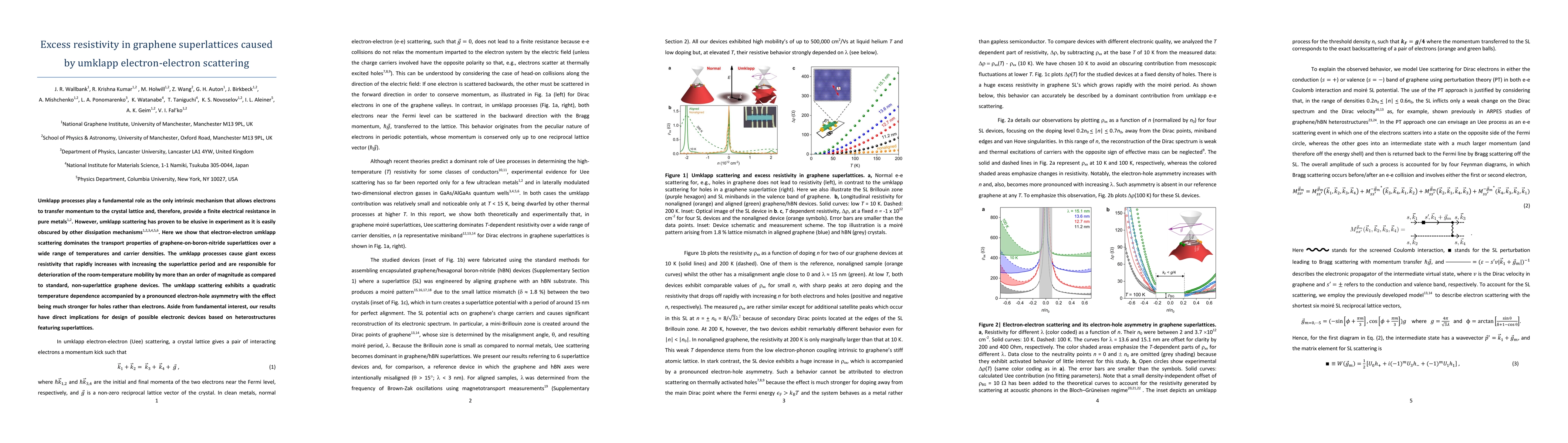 This study reveals that umklapp electron-electron scattering significantly contributes to excess resistivity in graphene superlattices, causing a dramatic drop in room-temperature mobility and a strong temperature-dependent effect, with implications for the design of future electronic devices.