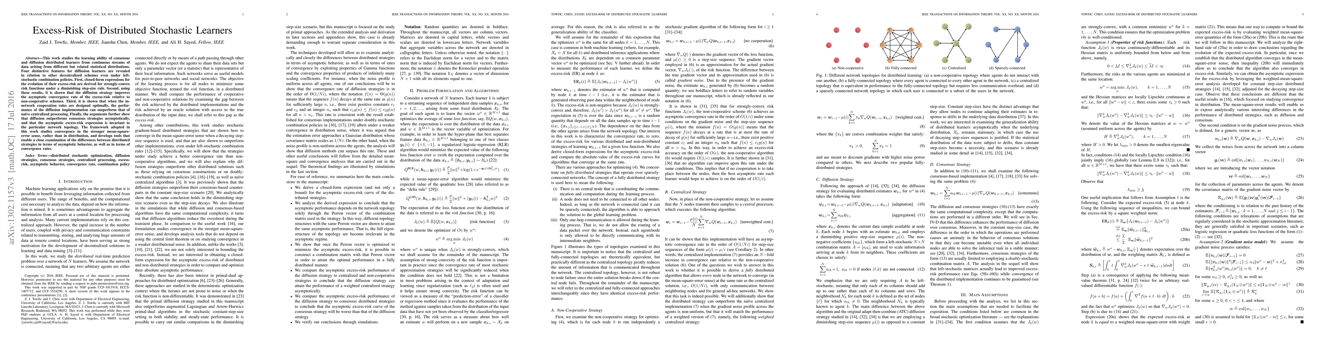 This work studies the learning ability of consensus and diffusion distributed learners from continuous streams of data arising from different but related statistical distributions. Four distinctive features for diffusion learners are revealed in relation to other decentralized schemes even under left-stochastic combination policies. First, closed-form expressions for the evolution of their excess-risk are derived for strongly-convex risk functions under a diminishing step-size rule. Second, using these results, it is shown that the diffusion strategy improves the asymptotic convergence rate of the excess-risk relative to non-cooperative schemes. Third, it is shown that when the in-network cooperation rules are designed optimally, the performance of the diffusion implementation can outperform that of naive centralized processing. Finally, the arguments further show that diffusion outperforms consensus strategies asymptotically, and that the asymptotic excess-risk expression is invariant to the particular network topology. The framework adopted in this work studies convergence in the stronger mean-square-error sense, rather than in distribution, and develops tools that enable a close examination of the differences between distributed strategies in terms of asymptotic behavior, as well as in terms of convergence rates.
