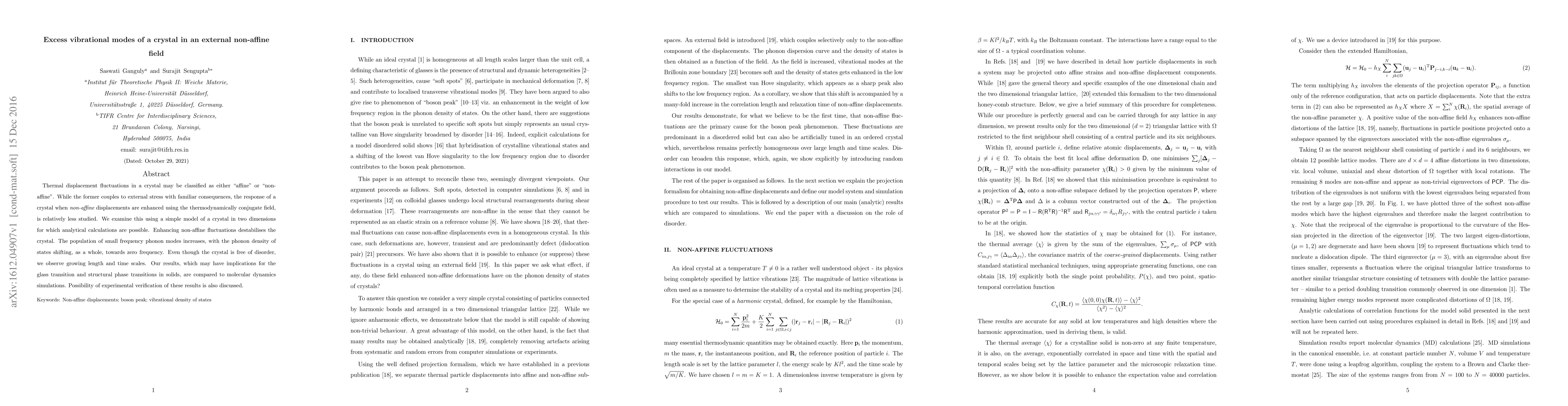 This paper investigates the impact of enhanced non-affine displacements in a crystal under an external non-affine field, revealing that it destabilizes the crystal and increases the population of low-frequency phonon modes, potentially impacting glass transitions and structural phase changes. The findings are supported by analytical calculations and molecular dynamics simulations.