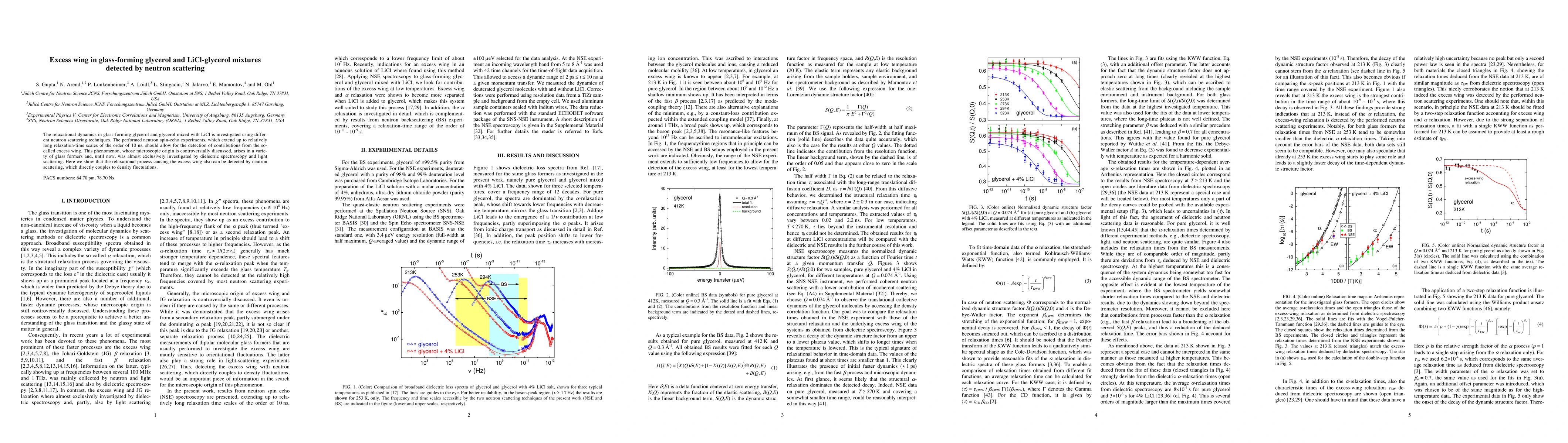 This study investigates the relaxational dynamics in glass-forming glycerol and LiCl-glycerol mixtures using neutron scattering techniques, particularly neutron spin-echo experiments, to detect the excess wing phenomenon. The findings demonstrate that neutron scattering can directly observe the density fluctuations associated with the excess wing, providing new insights into its microscopic origin.