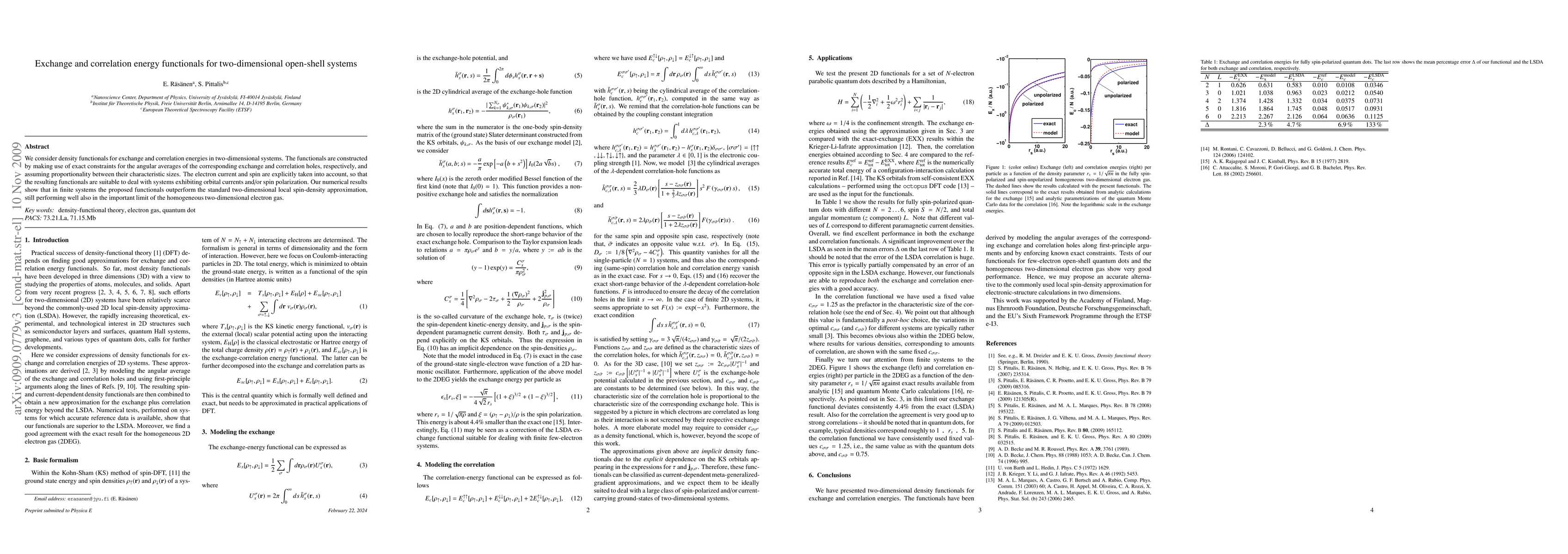 This paper proposes new density functionals for exchange and correlation energies in two-dimensional open-shell systems, incorporating exact constraints and proportionality assumptions. The functionals account for electron current and spin, outperforming standard local spin-density approximations in finite systems and performing well in homogeneous electron gas scenarios.