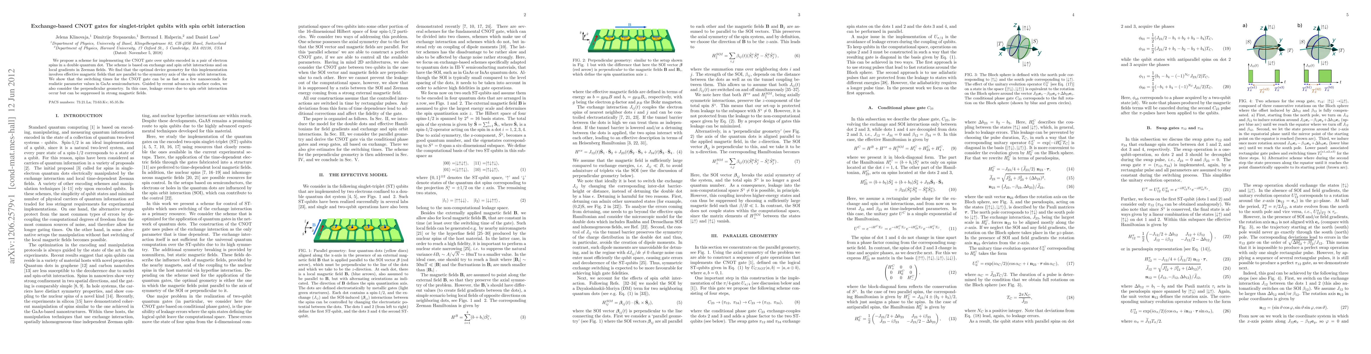 The paper presents a detailed analysis and design of exchange-based CNOT gates for singlet-triplet qubits using spin-orbit interaction, providing a pathway for faster and more reliable quantum gate operations.