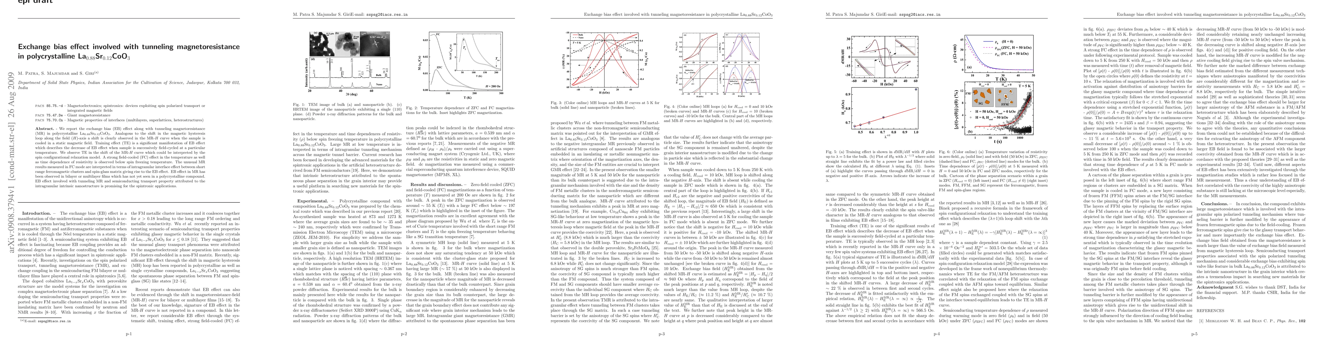 Researchers observed exchange bias effect with tunneling magnetoresistance in polycrystalline La_{0.88}Sr_{0.12}CoO_3, a shift in the MR-H curve when cooled in a magnetic field, which could lead to spintronic applications.