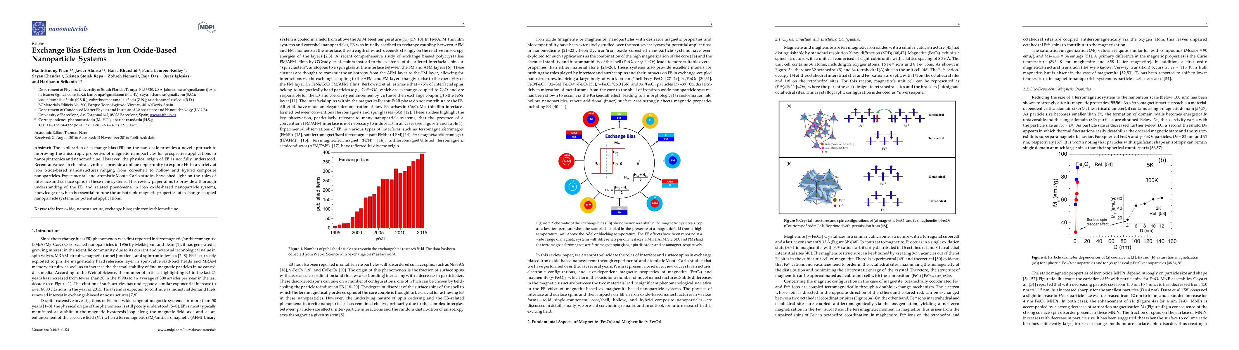 The exploration of exchange bias (EB) on the nanoscale provides a novel approach to improving the anisotropic properties of magnetic nanoparticles for prospective applications in nanospintronics and nanomedicine. However, the physical origin of EB is not fully understood. Recent advances in chemical synthesis provide a unique opportunity to explore EB in a variety of iron oxide-based nanostructures ranging from core/shell to hollow and hybrid composite nanoparticles. Experimental and atomistic Monte Carlo studies have shed light on the roles of interface and surface spins in these nanosystems. This review paper aims to provide a thorough understanding of the EB and related phenomena in iron oxide-based nanoparticle systems, knowledge of which is essential to tune the anisotropic magnetic properties of exchange-coupled nanoparticle systems for potential applications.