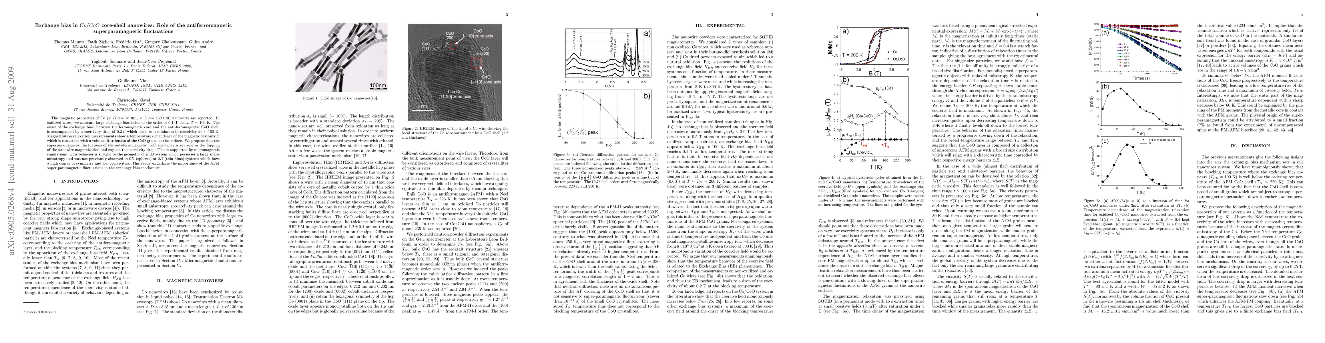 This study investigates the magnetic properties of Co/CoO core-shell nanowires, revealing large exchange bias fields and a significant coercivity drop due to superparamagnetic fluctuations in the antiferromagnetic CoO shell. The findings highlight the unique role of 1D geometry in the exchange bias mechanism.