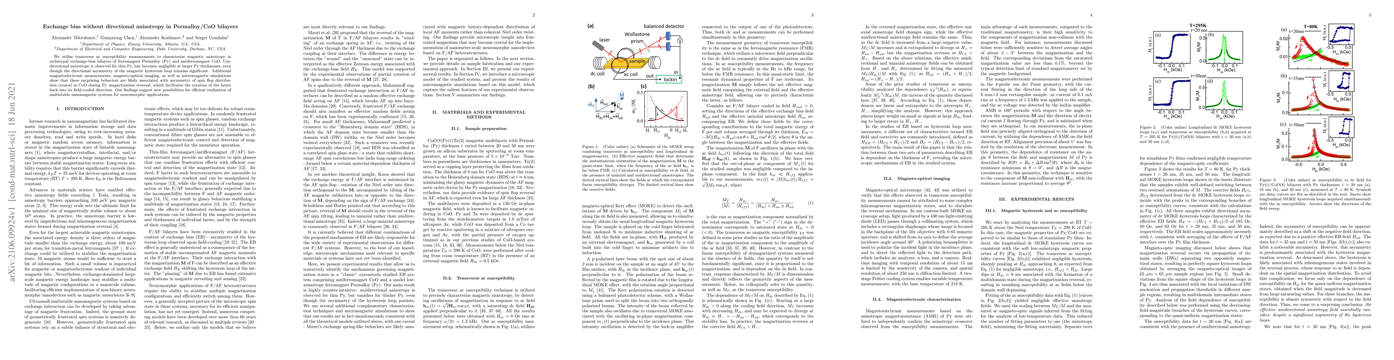 We utilize transverse ac susceptibility measurements to characterize magnetic anisotropy in archetypal exchange-bias bilayers of ferromagnet Permalloy (Py) and antiferromagnet CoO. Unidirectional anisotropy is observed for thin Py, but becomes negligible at larger Py thicknesses, even though the directional asymmetry of the magnetic hysteresis loop remains significant. Additional magnetoelectronic measurements, magneto-optical imaging, as well as micromagnetic simulations show that these surprising behaviors are likely associated with asymmetry of spin flop distribution created in CoO during Py magnetization reversal, which facilitates the rotation of the latter back into its field-cooled direction. Our findings suggest new possibilities for efficient realization of multistable nanomagnetic systems for neuromorphic applications.