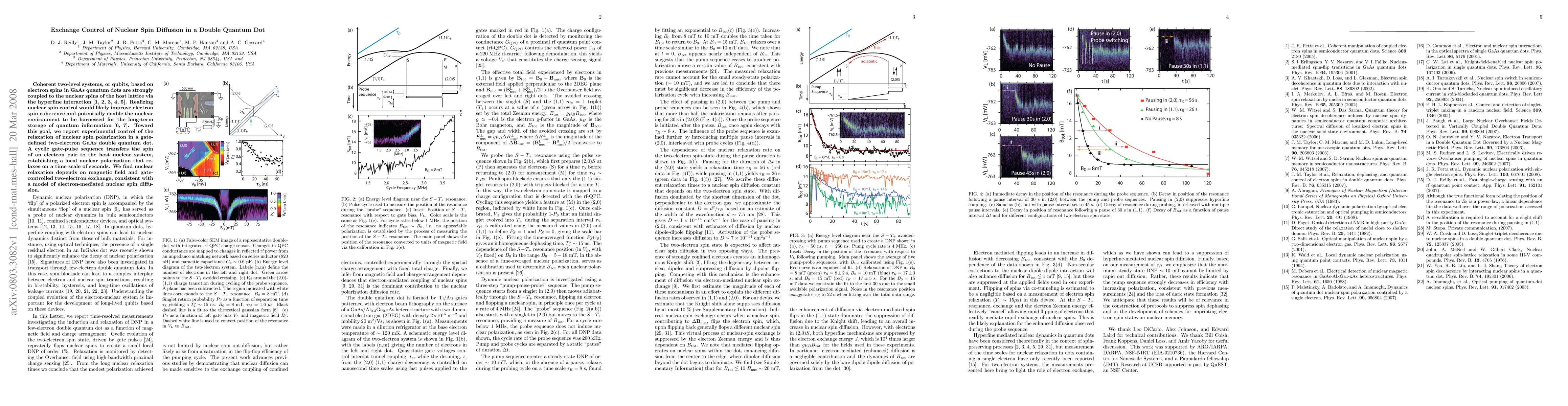 The paper presents a novel approach to control nuclear spin relaxation in a double quantum dot using gate-pulse sequences and demonstrates electron-mediated nuclear spin diffusion.