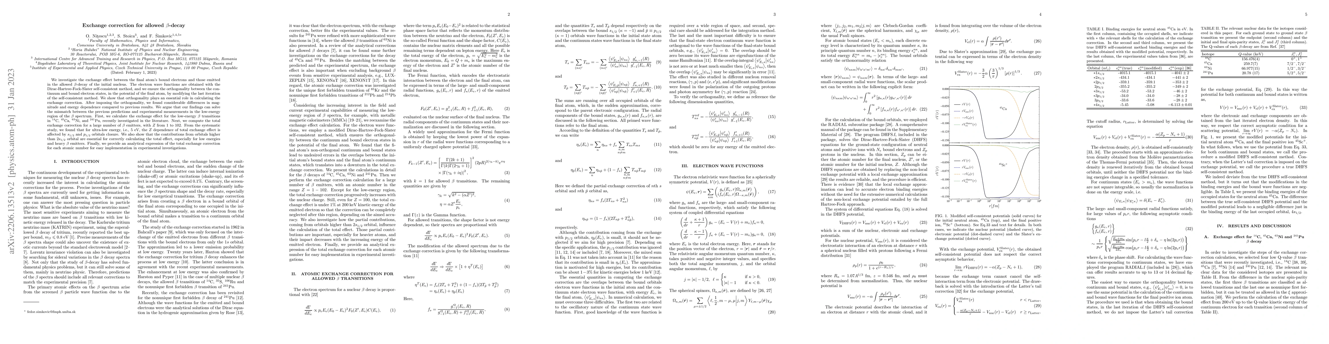 This paper investigates the exchange correction in allowed $\beta$-decay, focusing on the interaction between emitted electrons and final atom's bound electrons. It employs the Dirac-Hartree-Fock-Slater method to ensure orthogonality between electron states, leading to significant differences in calculated corrections compared to previous results, which can resolve discrepancies in low-energy $\beta$ spectrum predictions.