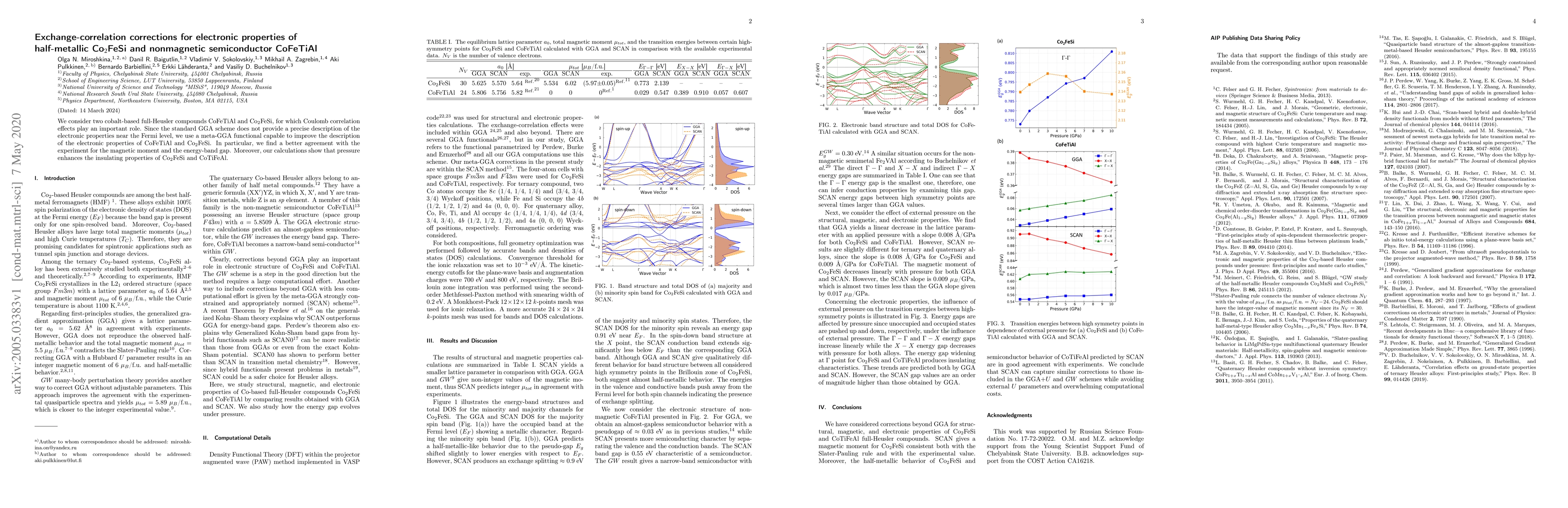 Researchers improved electronic property predictions for cobalt-based compounds CoFeTiAl and Co2FeSi using a meta-GGA functional, achieving better agreement with experiments for magnetic moment and energy-band gap.