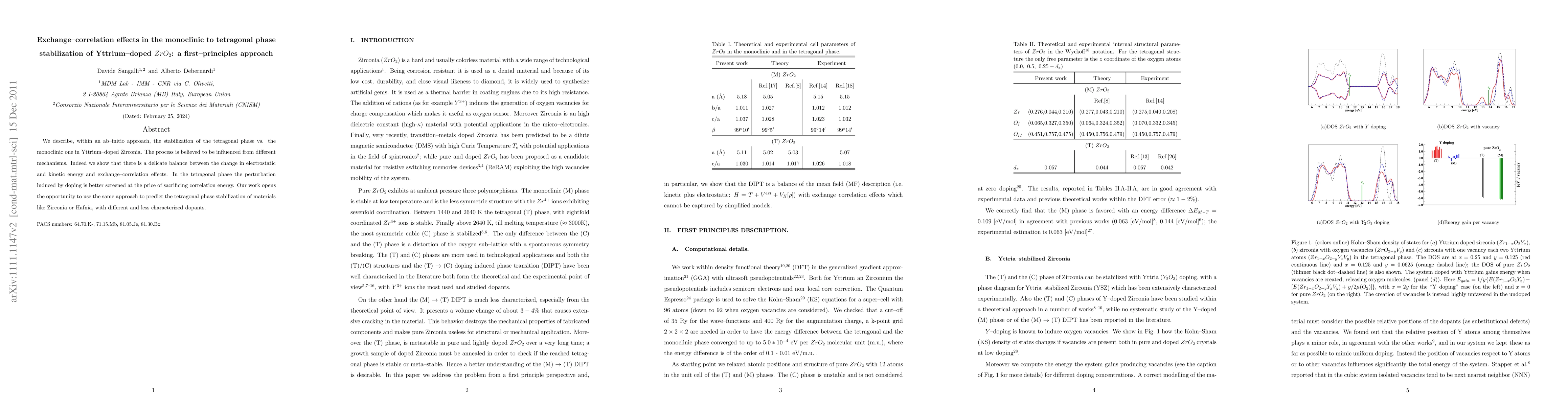Researchers used first-principles approach to study the stabilization of Yttrium-doped ZrO2 in its tetragonal phase, finding a balance between electrostatic, kinetic energy changes and exchange-correlation effects.
