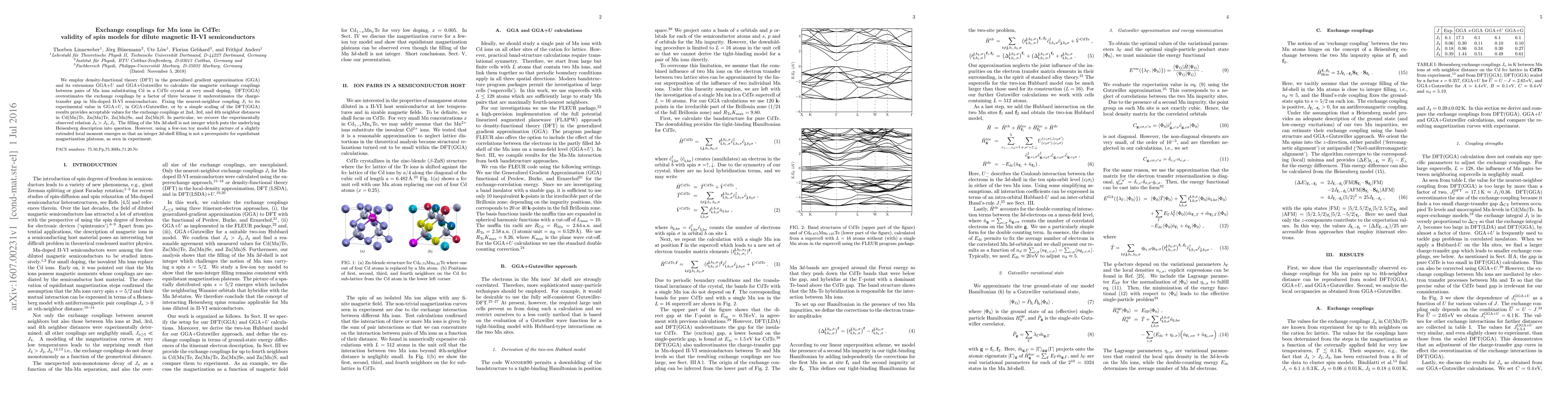 We employ density-functional theory (DFT) in the generalized gradient approximation (GGA) and its extensions GGA+$U$ and GGA+Gutzwiller to calculate the magnetic exchange couplings between pairs of Mn ions substituting Cd in a CdTe crystal at very small doping. DFT(GGA) overestimates the exchange couplings by a factor of three because it underestimates the charge-transfer gap in Mn-doped II-VI semiconductors. Fixing the nearest-neighbor coupling $J_1$ to its experimental value in GGA+$U$, in GGA+Gutzwiller, or by a simple scaling of the DFT(GGA) results provides acceptable values for the exchange couplings at 2nd, 3rd, and 4th neighbor distances in Cd(Mn)Te, Zn(Mn)Te, Zn(Mn)Se, and Zn(Mn)S. In particular, we recover the experimentally observed relation $J_4>J_2,J_3$. The filling of the Mn 3$d$-shell is not integer which puts the underlying Heisenberg description into question. However, using a few-ion toy model the picture of a slightly extended local moment emerges so that an integer $3d$-shell filling is not a prerequisite for equidistant magnetization plateaus, as seen in experiment.
