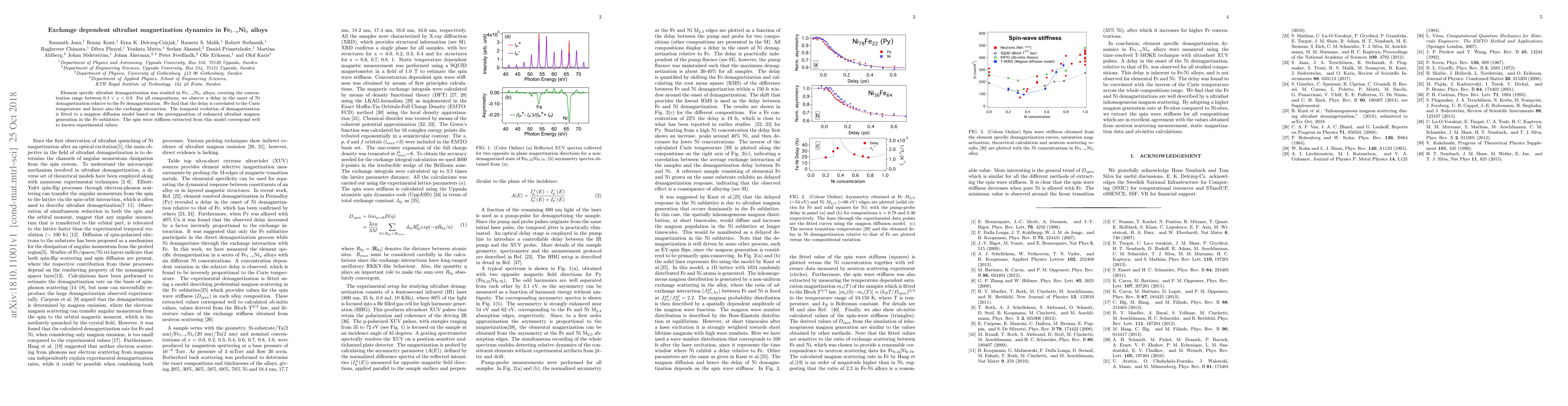 Element specific ultrafast demagnetization was studied in Fe$_{1-x}$Ni$_{x}$