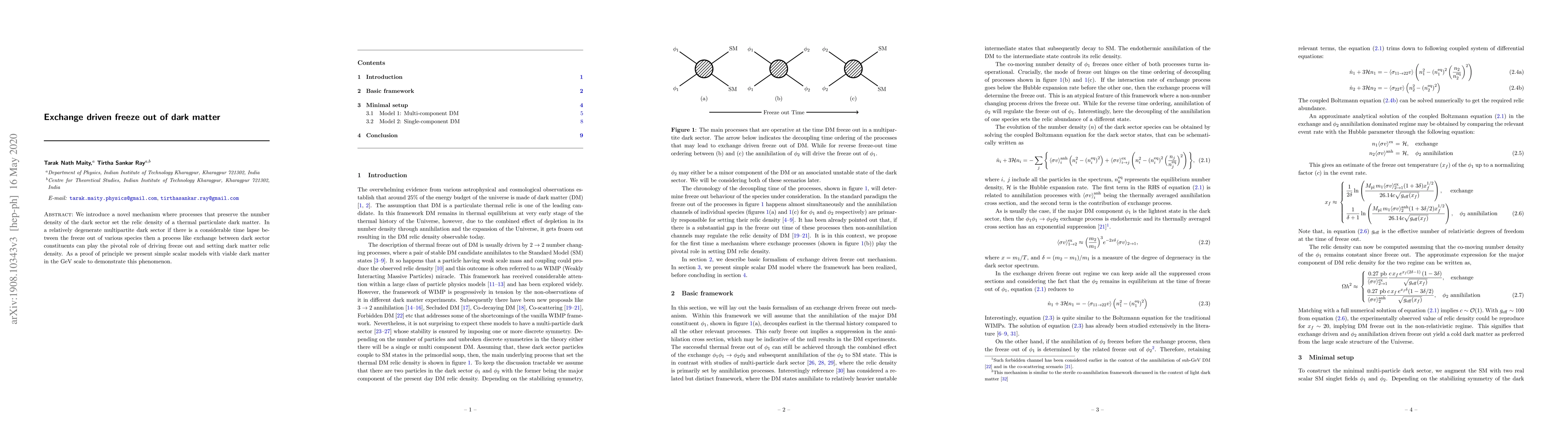 The paper presents a novel freeze-out mechanism driven by exchange processes within a degenerate dark sector, providing simple scalar models to demonstrate this phenomenon and showing how it can satisfy both relic density and direct detection constraints.
