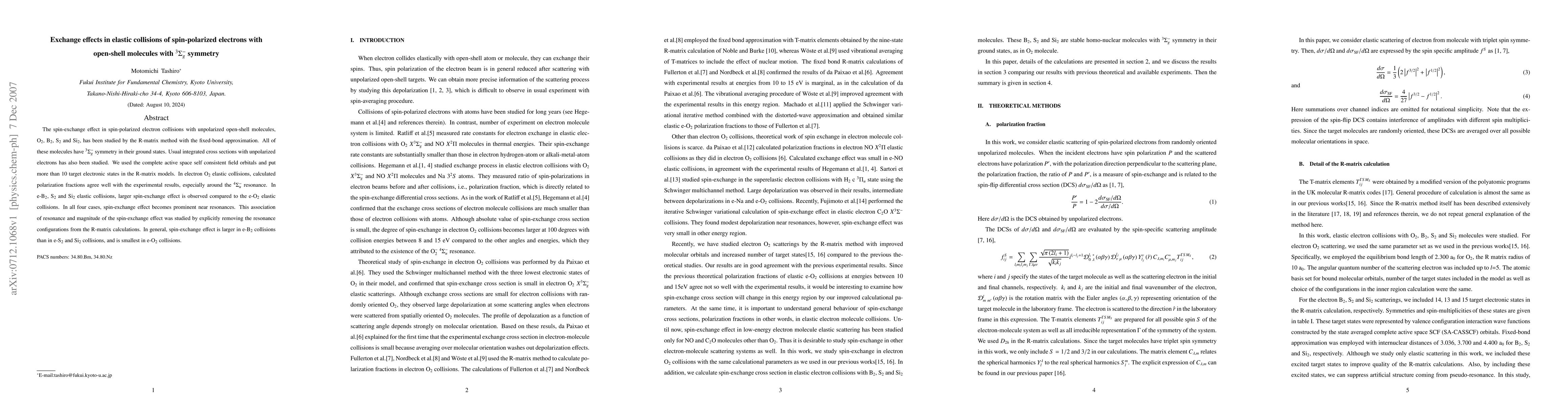 This study investigates spin-exchange effects in elastic collisions of spin-polarized electrons with open-shell molecules (O$_2$, B$_2$, S$_2$, Si$_2$) using the R-matrix method. The research finds that the spin-exchange effect is more pronounced in e-B$_2$ collisions compared to e-O$_2$, e-S$_2$, and e-Si$_2$ collisions, with resonances significantly influencing the effect.