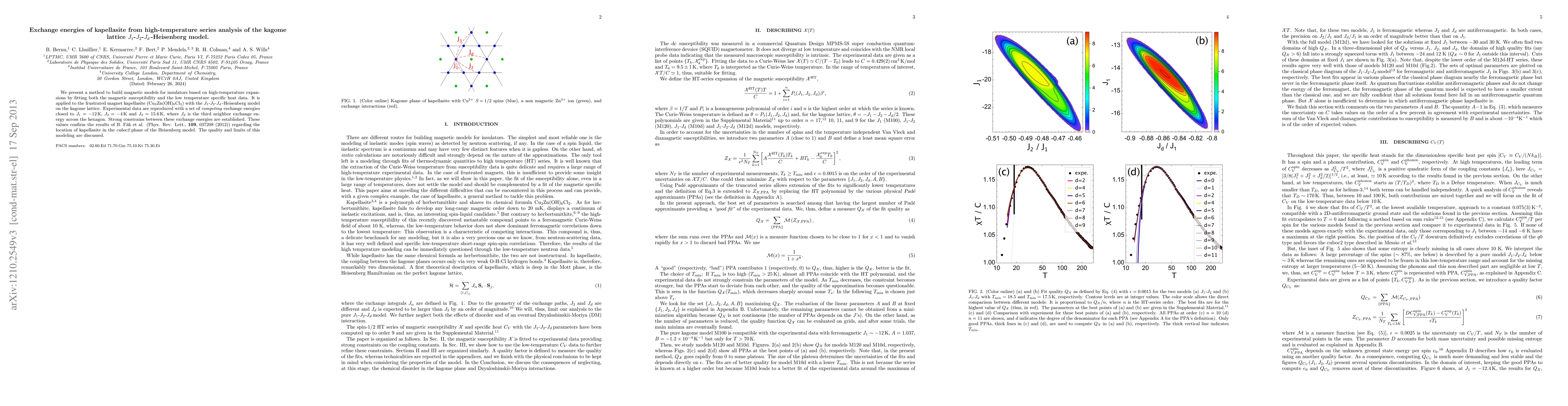 This work stands out by applying high-temperature series analysis to kapellasite, a frustrated magnet on the kagome lattice, and reproducing experimental data with competing exchange energies, thereby establishing strong constraints between them.