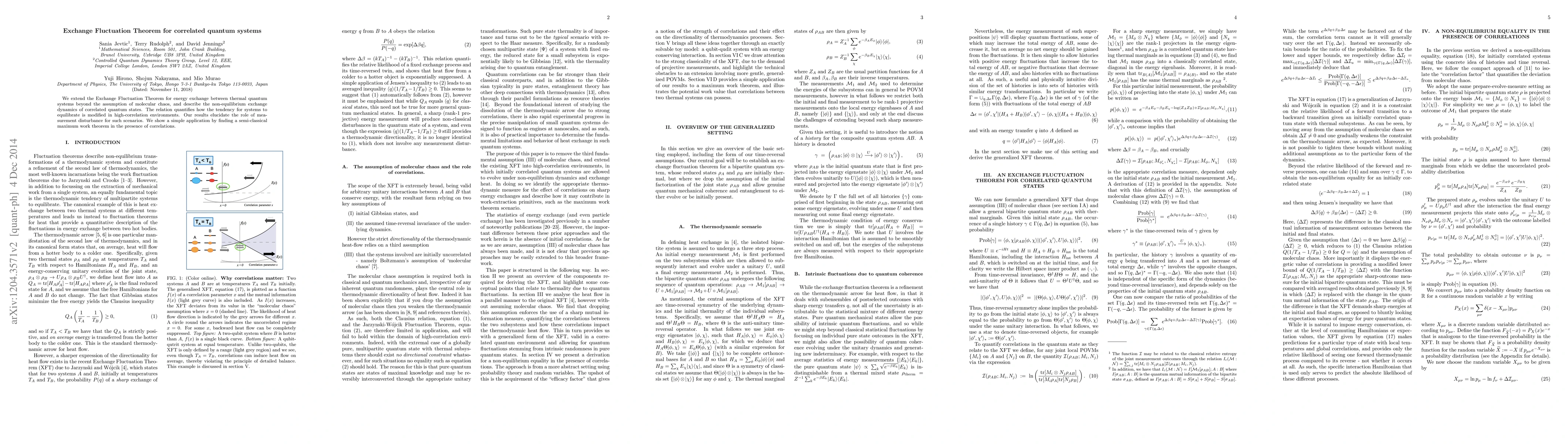 We extend the Exchange Fluctuation Theorem for energy exchange between thermal quantum systems beyond the assumption of molecular chaos, and describe the non-equilibrium exchange dynamics of correlated quantum states. The relation quantifies how the tendency for systems to equilibrate is modified in high-correlation environments. Our results elucidate the role of measurement disturbance for such scenarios. We show a simple application by finding a semi-classical maximum work theorem in the presence of correlations.