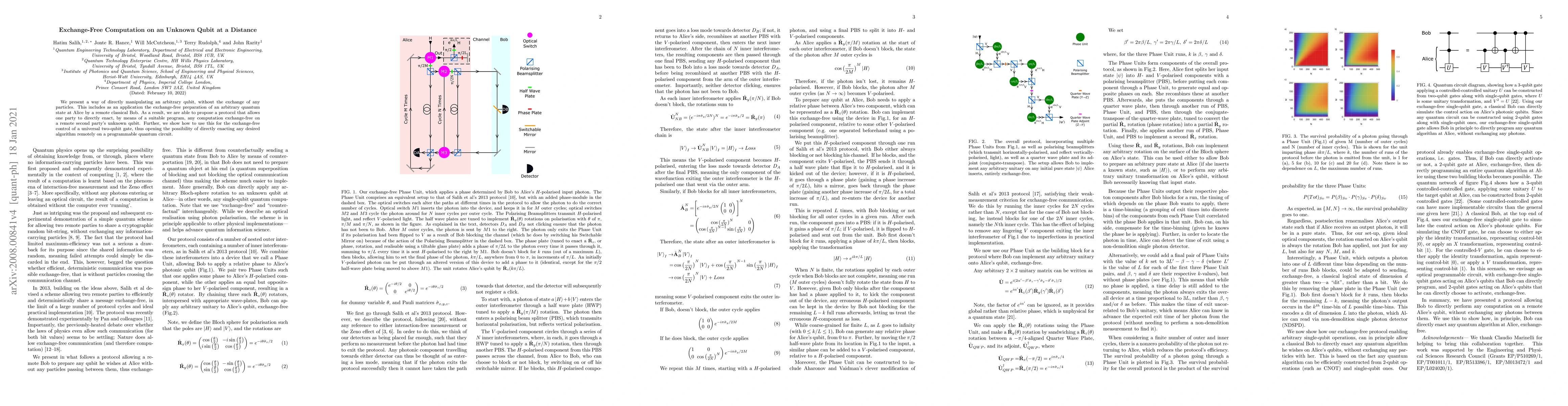 We present a way of directly manipulating an arbitrary qubit, without the exchange of any particles. This includes as an application the exchange-free preparation of an arbitrary quantum state at Alice by a remote classical Bob. As a result, we are able to propose a protocol that allows one party to directly enact, by means of a suitable program, any computation exchange-free on a remote second party's unknown qubit. Further, we show how to use this for the exchange-free control of a universal two-qubit gate, thus opening the possibility of directly enacting any desired algorithm remotely on a programmable quantum circuit.