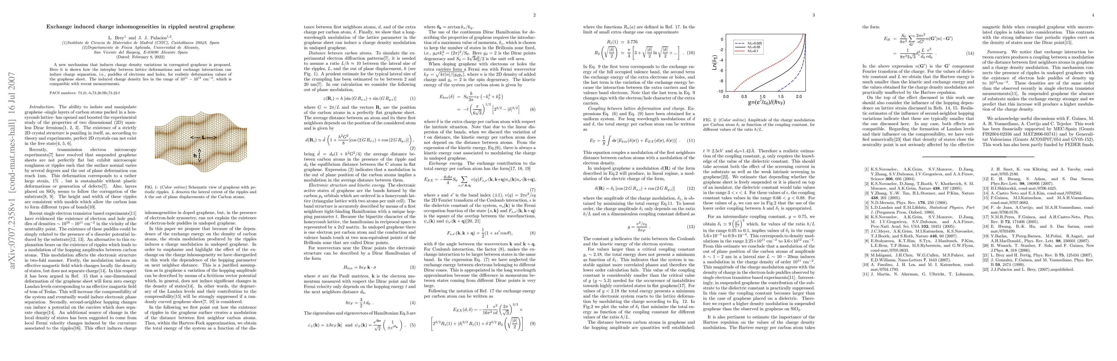 This research proposes a novel mechanism causing charge variations in rippled graphene, attributing it to lattice deformations and exchange interactions. It demonstrates that this interplay can create electron and hole 'puddles' with densities of $10^{11}-10^{12}$ cm$^{-2}$, aligning with recent experimental findings.