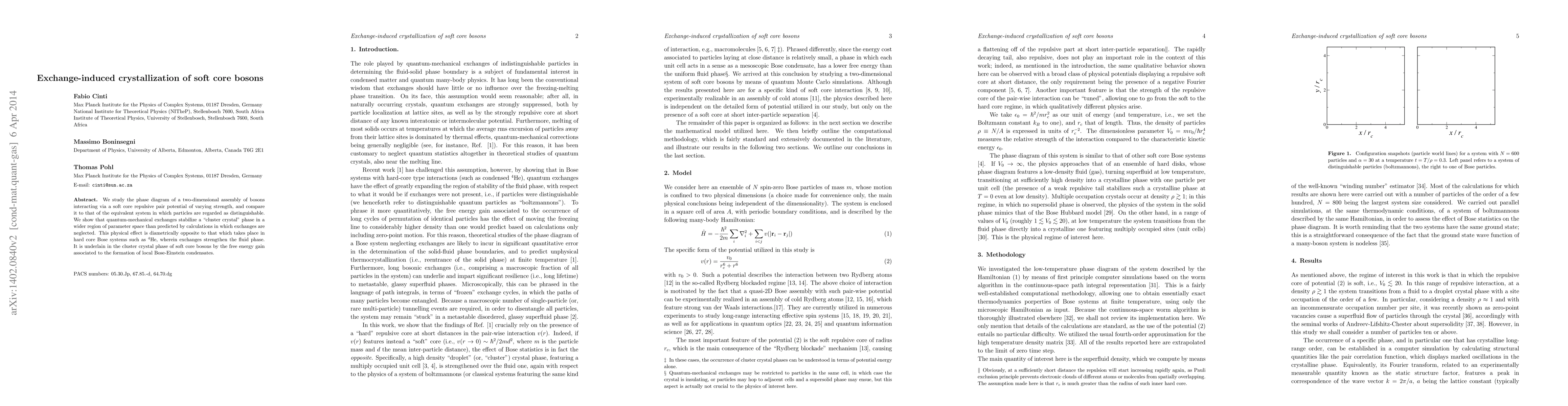 The paper presents a detailed computational study of soft core boson systems, introducing a method to account for quantum-mechanical exchanges in phase diagram analysis.