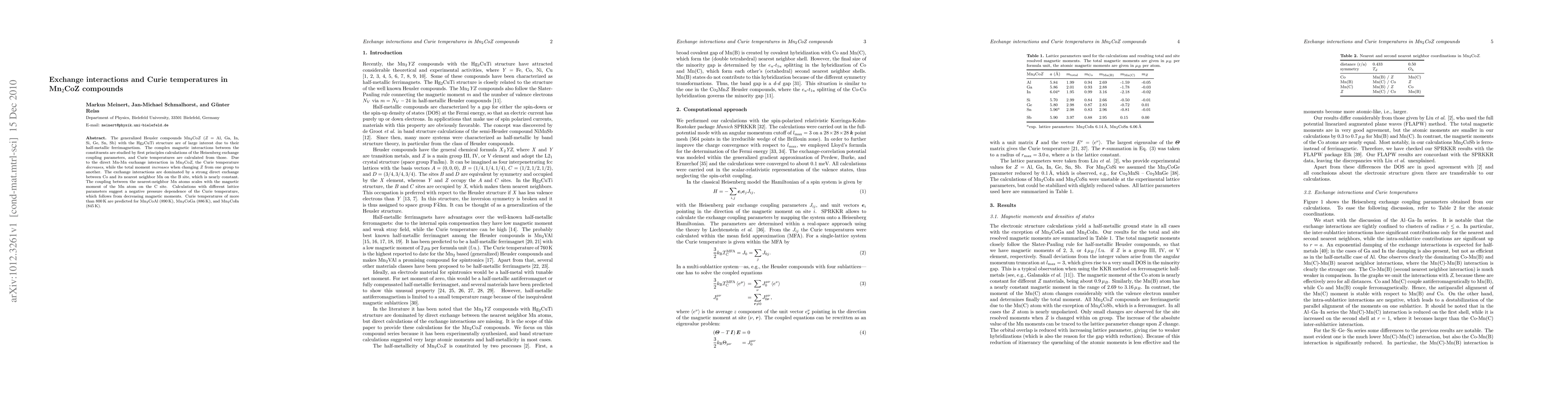 This paper investigates the magnetic interactions and Curie temperatures in Mn2CoZ compounds using first principles calculations. It finds that Curie temperatures decrease due to direct Mn-Mn exchange interactions, while the total magnetic moment increases with varying Z elements.