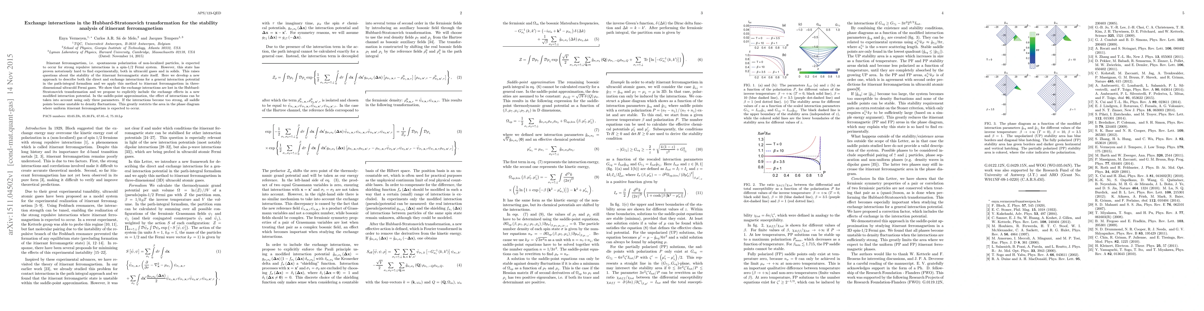 Itinerant ferromagnetism, i.e. spontaneous polarization of non-localized particles, is expected to occur for strong repulsive interactions in a spin-1/2 Fermi system. However, this state has proven notoriously hard to find experimentally, both in ultracold gases and in solids. This raises questions about the stability of the itinerant ferromagnetic state itself. Here we develop a new approach to describe both the direct and exchange interactions for a general interaction potential in the path-integral formalism and we apply this method to itinerant ferromagnetism in three-dimensional ultracold Fermi gases. We show that the exchange interactions are lost in the Hubbard-Stratonovich transformation and we propose to explicitly include the exchange effects in a new modified interaction potential. In the saddle-point approximation, the effect of interactions can be taken into account using only three parameters. If the interactions become too strong, all saddle points become unstable to density fluctuations. This greatly restricts the area in the phase diagram where uniform itinerant ferromagnetism is expected to occur.