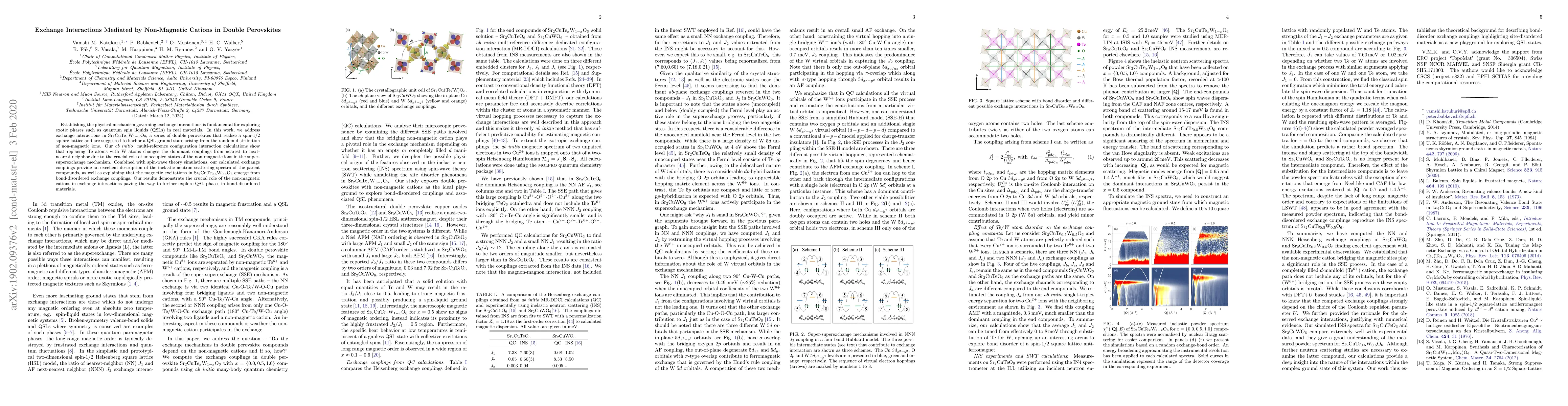 This study investigates exchange interactions in Sr2CuTe$_{1-x}$W$_{x}$O double perovskites, revealing that replacing Te with W alters dominant couplings via unoccupied states of non-magnetic ions, which play a key role in the super-superexchange mechanism. The findings provide insight into the magnetic excitations and support the potential for quantum spin liquid states in these materials.