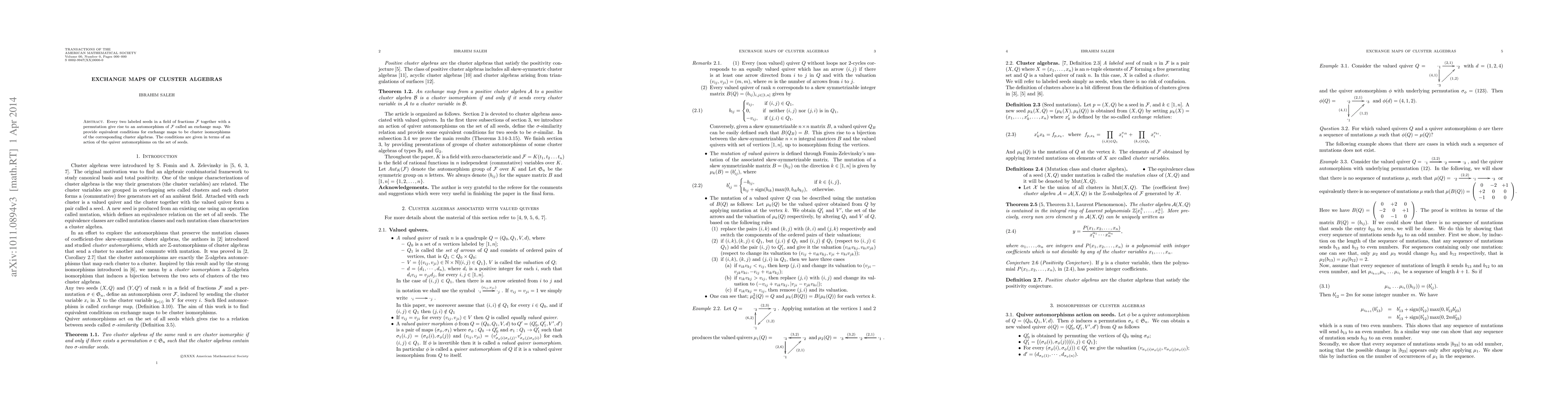 The paper introduces a framework for characterizing cluster isomorphisms through exchange automorphisms and symmetric group actions, providing foundational insights into the structure of cluster algebras.