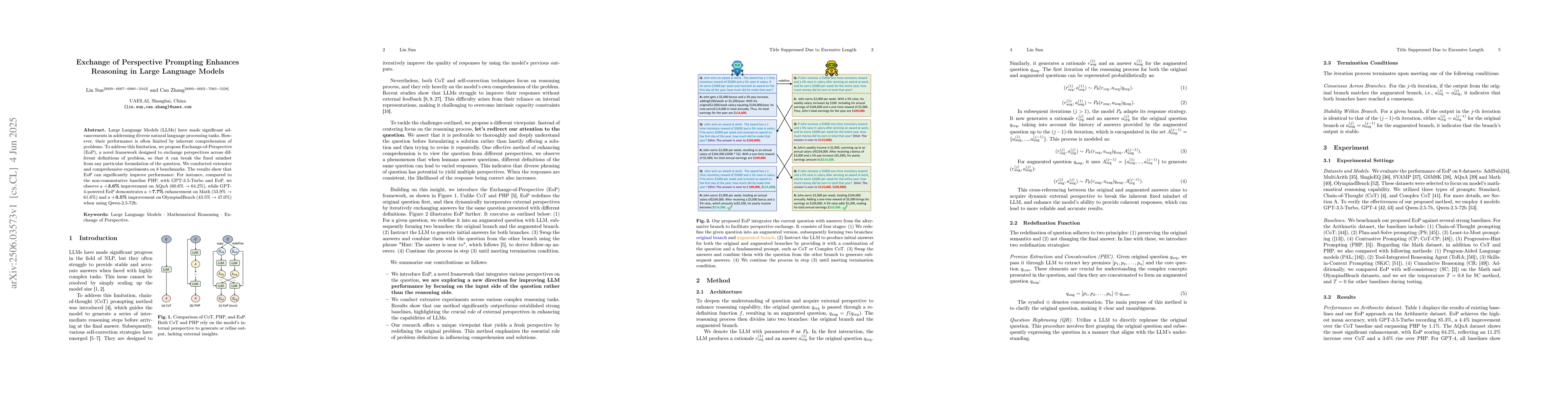 A new framework called Exchange-of-Perspective (EoP) improves performance in large language models by exchanging perspectives on problems, breaking the fixed mindset of a particular question formulation.