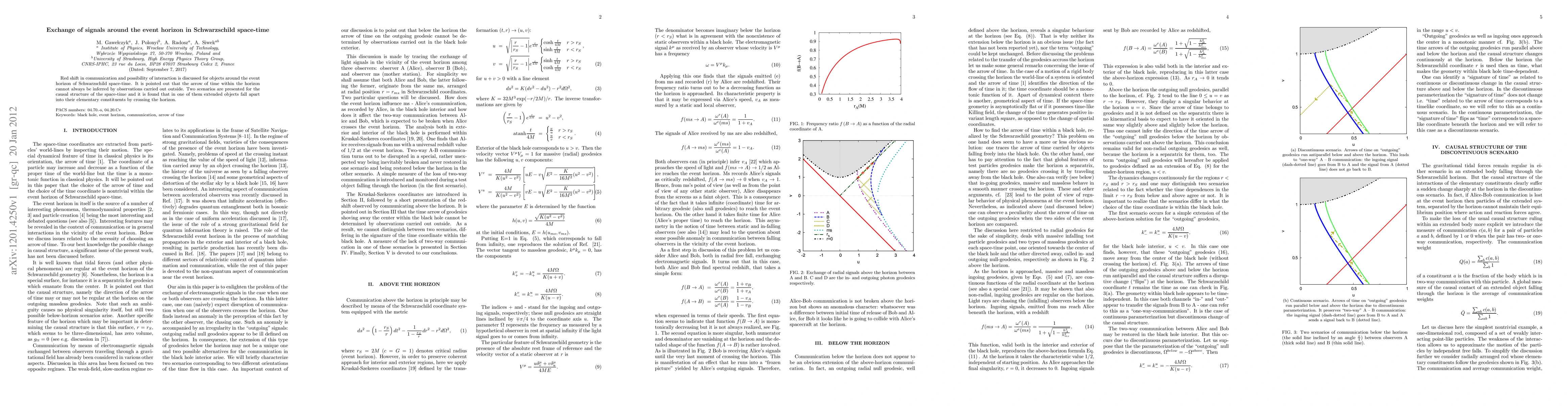 This paper explores the communication challenges and causal interactions near the event horizon of Schwarzschild space-time, noting that time's direction inside the horizon cannot always be deduced from outside observations. It presents two scenarios where extended objects may disintegrate into elementary particles upon crossing the horizon.