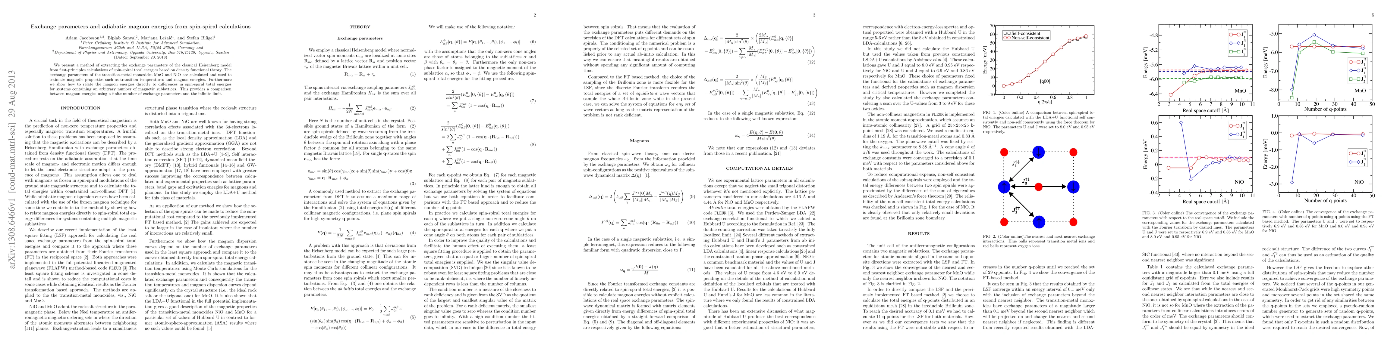 This paper proposes a method to derive exchange parameters from spin-spiral calculations using density functional theory, applying it to MnO and NiO to estimate magnetic properties. It also demonstrates how magnon energies correlate with spin-spiral total energy differences, comparing finite and infinite exchange parameter limits.