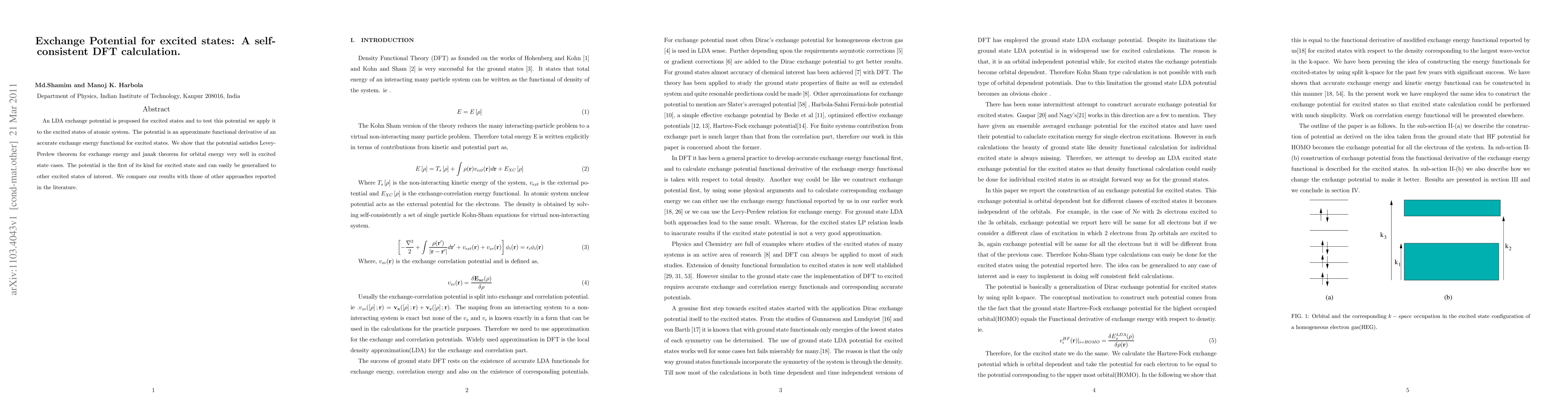 This paper proposes a new LDA exchange potential for excited states, derived from an accurate exchange energy functional, and demonstrates its effectiveness by applying it to atomic systems. The potential satisfies the Levey-Perdew and Janak theorems and compares favorably with other methods in the literature.