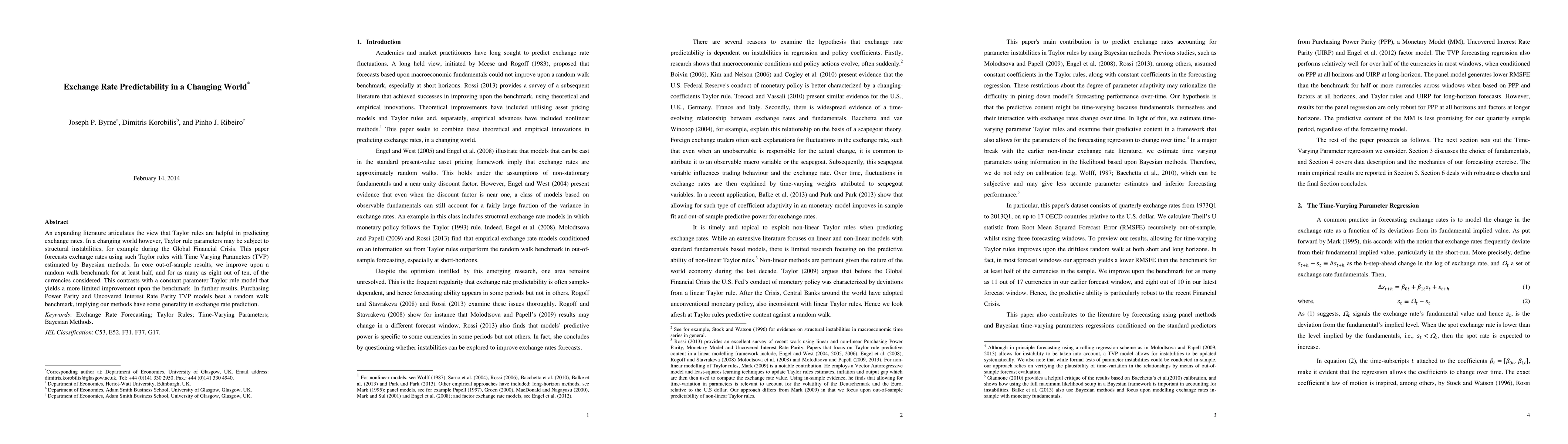 This study improves upon traditional Taylor rule models for predicting exchange rates by incorporating Time Varying Parameters estimated using Bayesian methods, outperforming a random walk benchmark in most cases.