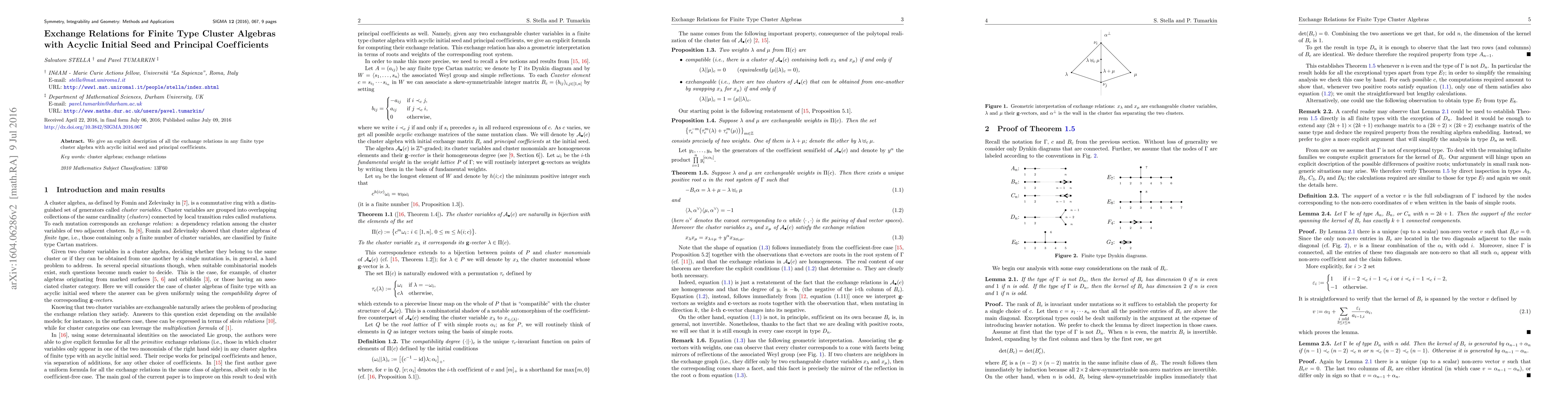 Summary: This paper provides a detailed account of the exchange relations for finite type cluster algebras, specifically focusing on those with acyclic initial seeds and principal coefficients. The explicit description aids in understanding the structure and behavior of these algebraic systems.