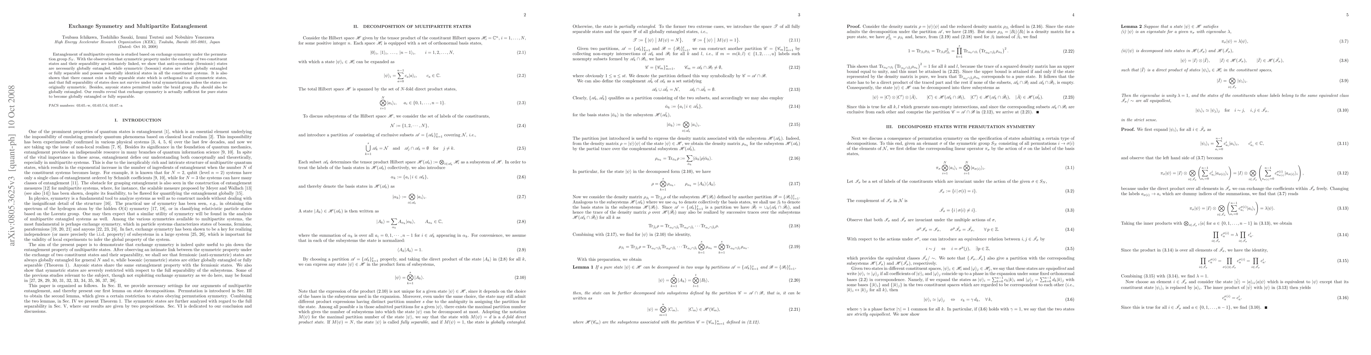 Entanglement of multipartite systems is studied based on exchange symmetry under the permutation group S_N. With the observation that symmetric property under the exchange of two constituent states and their separability are intimately linked, we show that anti-symmetric (fermionic) states are necessarily globally entangled, while symmetric (bosonic) states are either globally entangled or fully separable and possess essentially identical states in all the constituent systems. It is also shown that there cannot exist a fully separable state which is orthogonal to all symmetric states, and that full separability of states does not survive under total symmetrization unless the states are originally symmetric. Besides, anyonic states permitted under the braid group B_N should also be globally entangled. Our results reveal that exchange symmetry is actually sufficient for pure states to become globally entangled or fully separable.