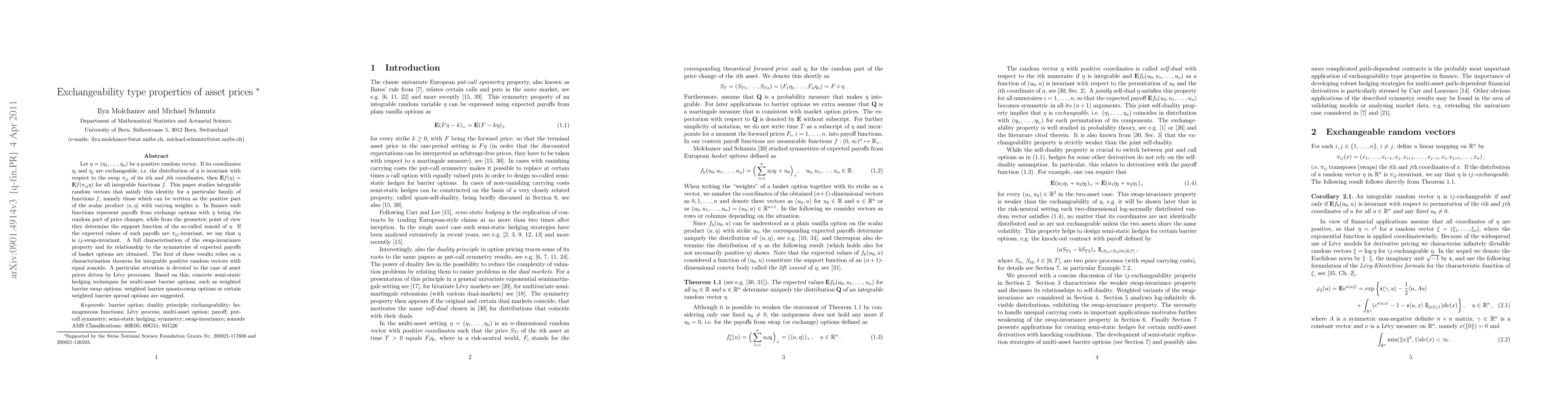 This paper explores how exchangeability affects asset prices and proposes hedging techniques for multi-asset barrier options, leveraging put-call symmetry and duality principles in option pricing.