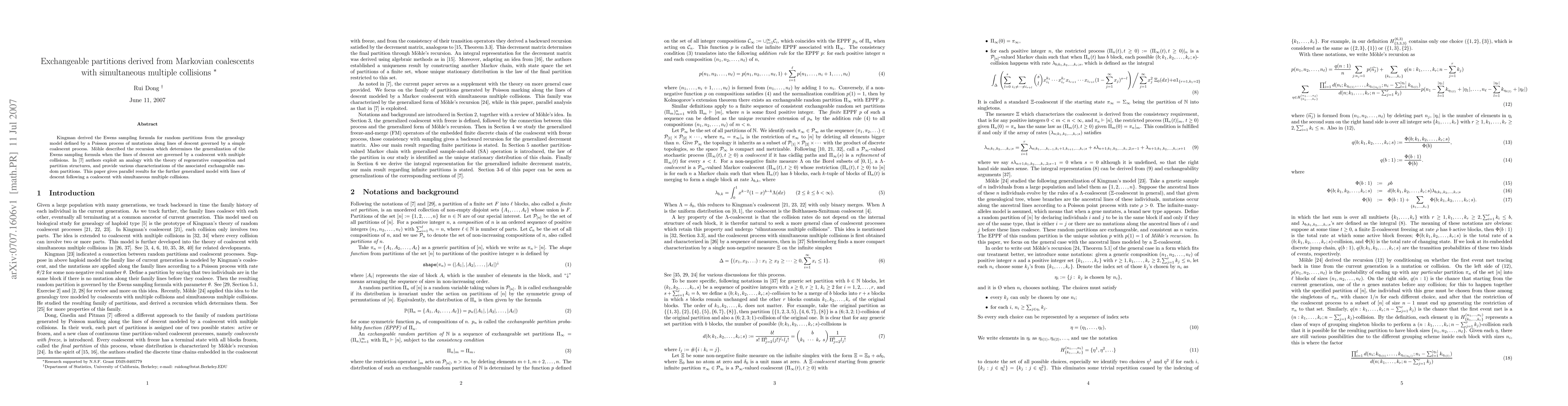 This paper extends the Ewens sampling formula to random partitions derived from a coalescent process with simultaneous multiple collisions, providing new characterizations and properties of the resulting exchangeable partitions. It builds on previous work by Kingman, Möhle, and Dong, Gnedin, and Pitman to generalize the model further.