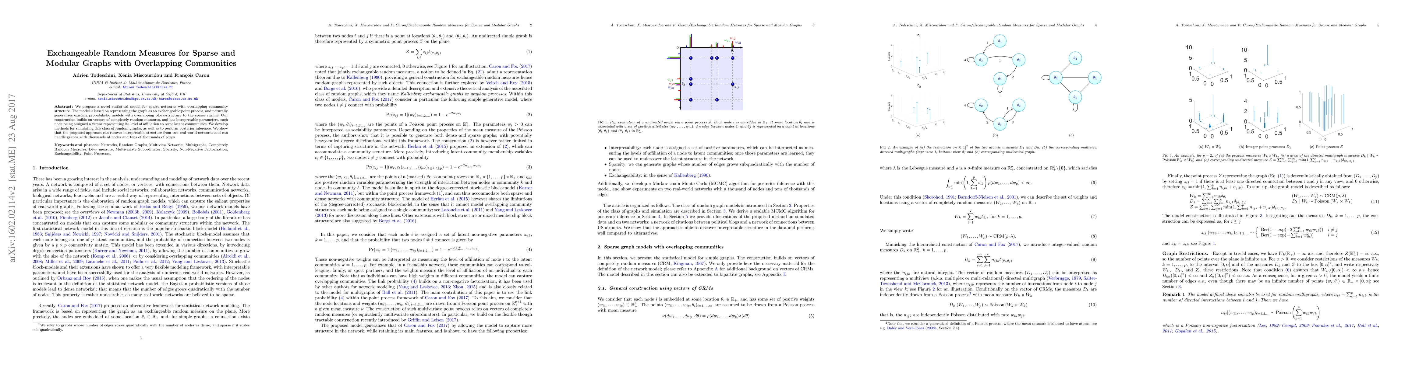 This paper proposes a new statistical model for sparse networks with overlapping community structures, represented as an exchangeable point process. The model generalizes existing probabilistic models and can handle large graphs, demonstrating its effectiveness through simulations and real-world network analysis.