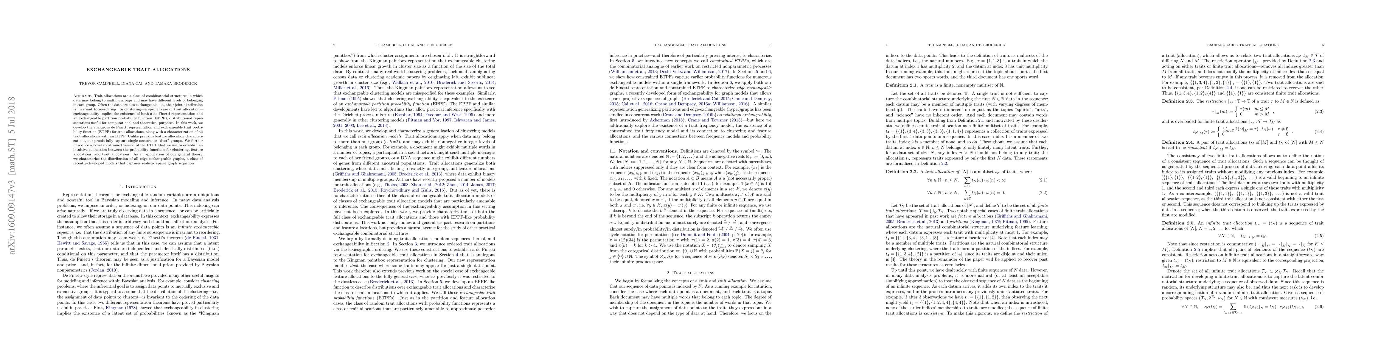 Researchers developed a de Finetti representation and exchangeable trait probability function for trait allocations, enabling more accurate modeling of data belonging to multiple groups with varying levels of membership. The findings have implications for clustering, feature allocation, and the distribution of edge-exchangeable graphs, a class of models capturing realistic sparse graph sequences.