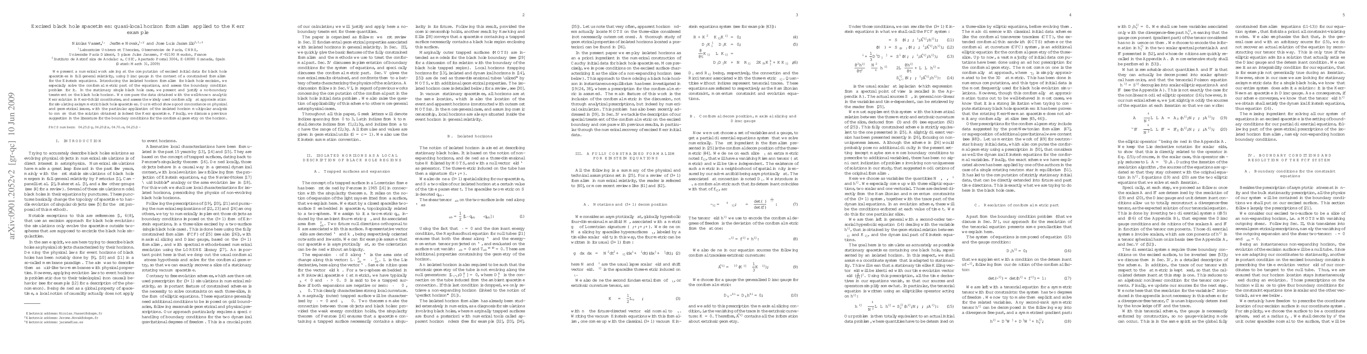 Researchers developed a numerical method to compute excised initial data for black hole spacetimes using the isolated horizon formalism, showing good concordance with the Kerr solution.