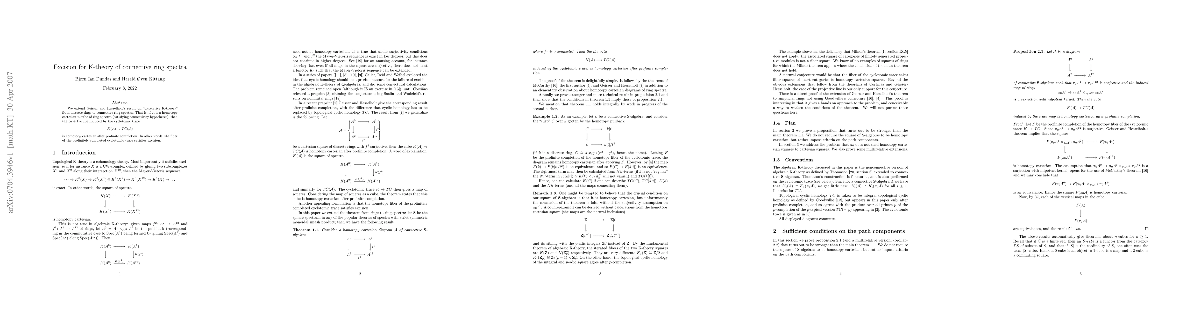 We extend Geisser and Hesselholt's result on ``bi-relative K-theory'' from discrete rings to connective ring spectra. That is, if $\mathcal A$ is a homotopy cartesian $n$-cube of ring spectra (satisfying connectivity hypotheses), then the $(n+1)$-cube induced by the cyclotomic trace $$K(\mathcal A)\to TC(\mathcal A)$$ is homotopy cartesian after profinite completion. In other words, the fiber of the profinitely completed cyclotomic trace satisfies excision.