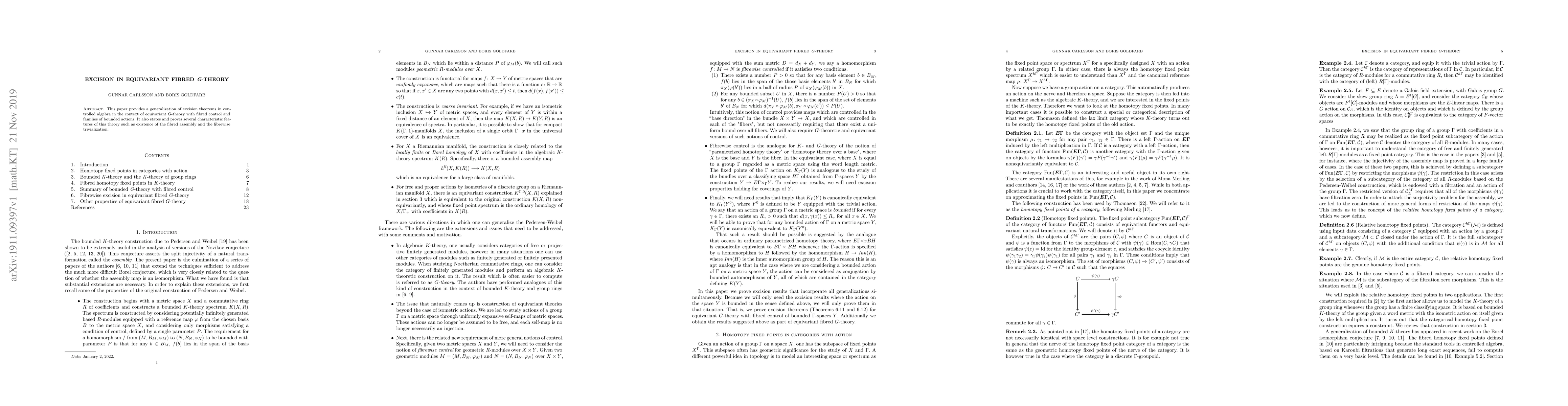 This paper generalizes excision theorems in controlled algebra for equivariant G-theory with fibred control, establishing the existence of fibred assembly and fibrewise trivialization in this new framework.
