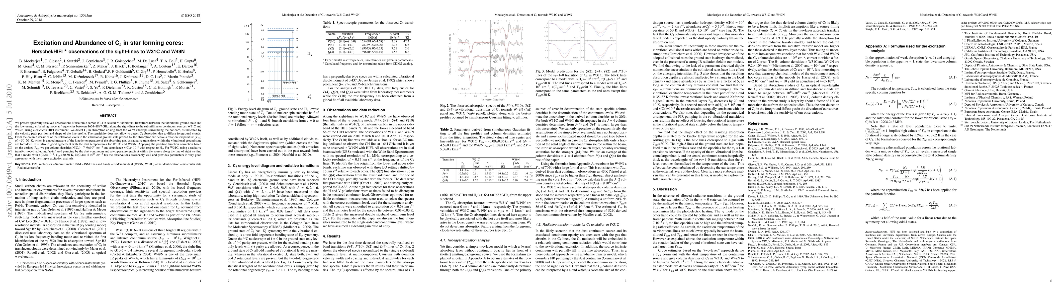 This paper reports on Herschel/HIFI observations of triatomic carbon (C3) in star-forming regions W31C and W49N, detecting C3 in absorption and deriving its column density and abundance. The study finds a rotation temperature of ~50-70 K and an abundance of C3 of ~10^-8 relative to H2, consistent with dust temperatures and supporting a model of the warm gas envelope.