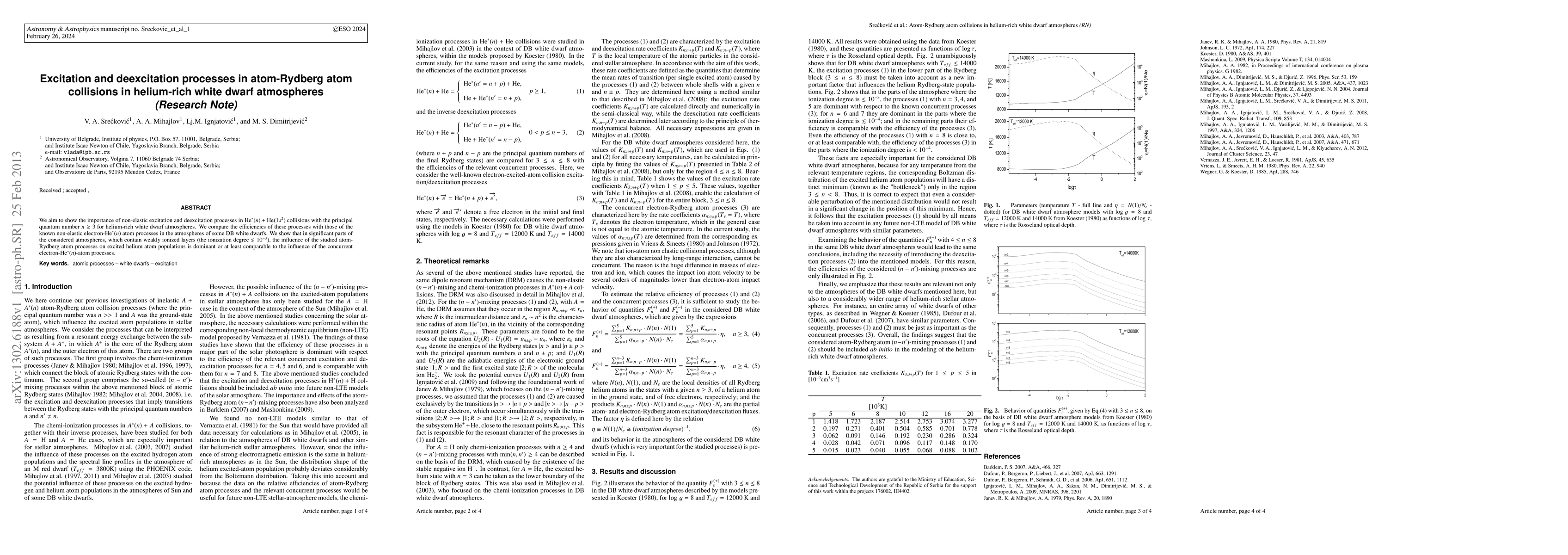 This paper investigates the significance of non-elastic excitation and deexcitation processes in helium-rich white dwarf atmospheres during collisions between $\textrm{He}^{*}(n)$ Rydberg atoms and ground-state helium atoms. It finds that these processes are dominant or comparable to electron-$\textrm{He}^{*}(n)$ atom interactions in weakly ionized layers, impacting the populations of excited helium atoms.