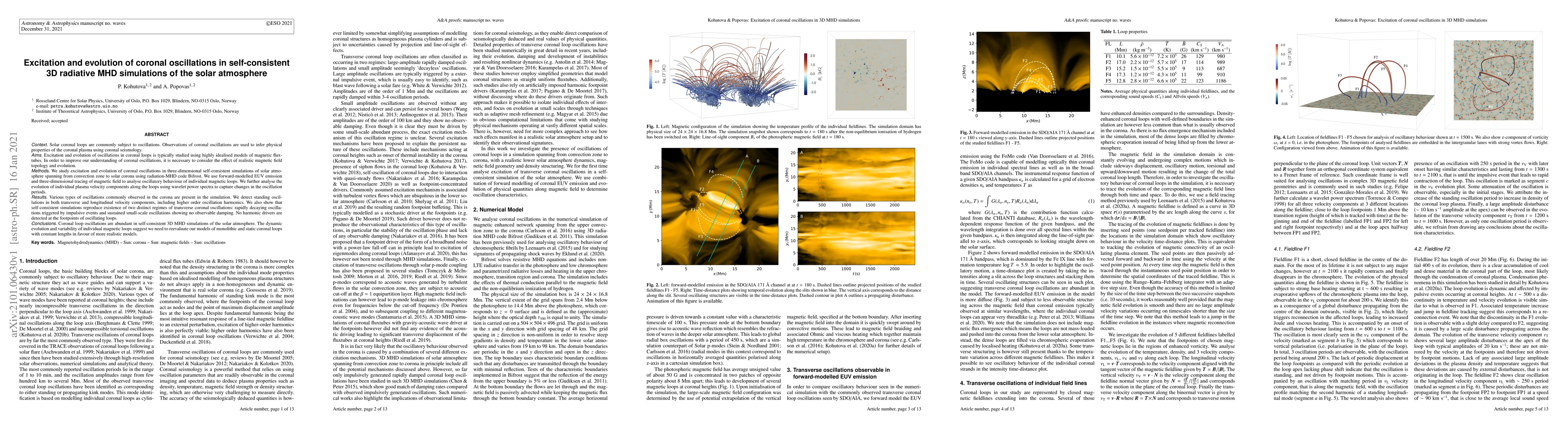 This paper investigates the excitation and evolution of coronal oscillations in self-consistent 3D radiative MHD simulations of the solar atmosphere using the Bifrost code. It finds that realistic magnetic field topologies lead to diverse oscillation types, including standing oscillations and distinct regimes of transverse oscillations, challenging monolithic loop models.