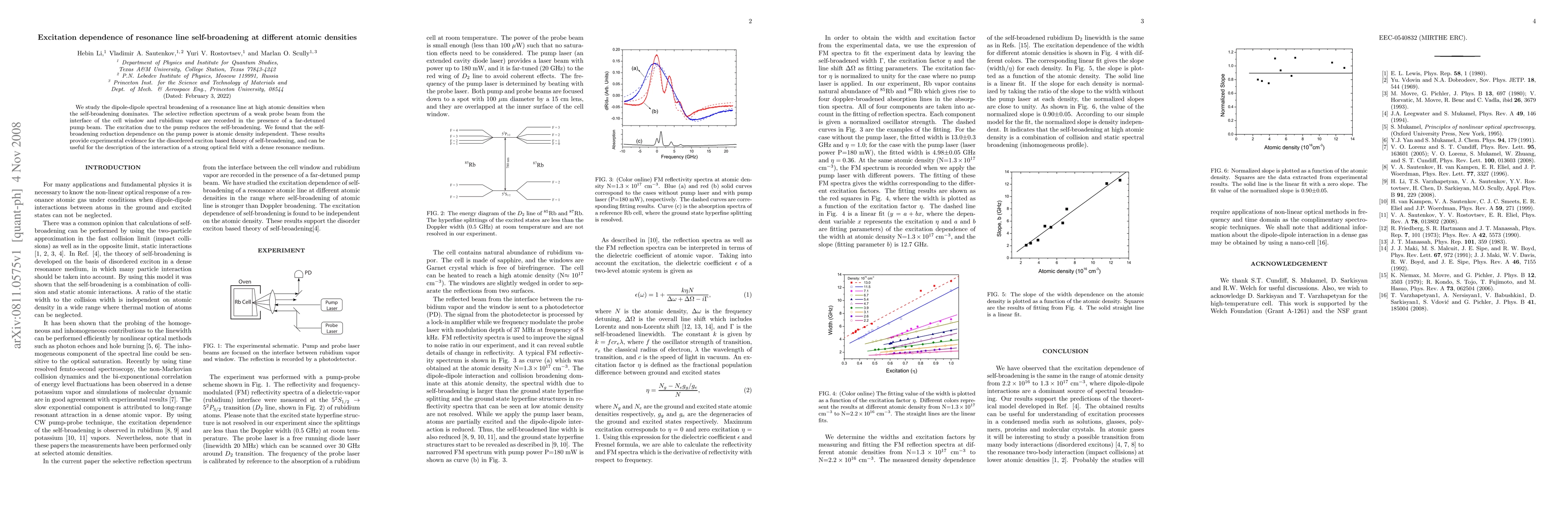 This study investigates the reduction in resonance line self-broadening due to dipole-dipole interactions at high atomic densities, finding that the effect is independent of atomic density and supports the disordered exciton theory. The experiment uses a weak probe beam reflected from rubidium vapor in the presence of a far-detuned pump beam.