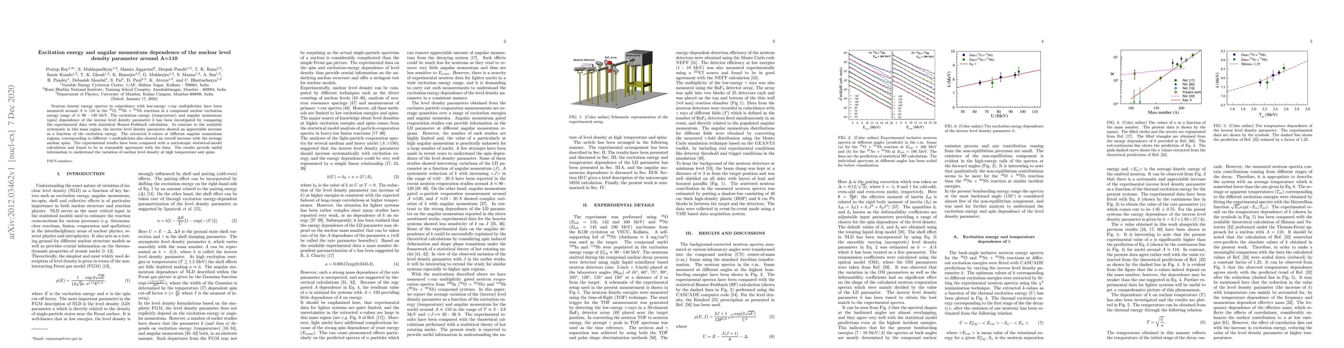 This paper investigates the excitation energy and angular momentum dependence of the nuclear level density parameter around A ≈ 110 using neutron spectra and γ-ray multiplicities in compound nuclear reactions. The results show an increase in the inverse level density parameter with both excitation energy and angular momentum, providing insights into nuclear level density variations at high temperatures and spins.