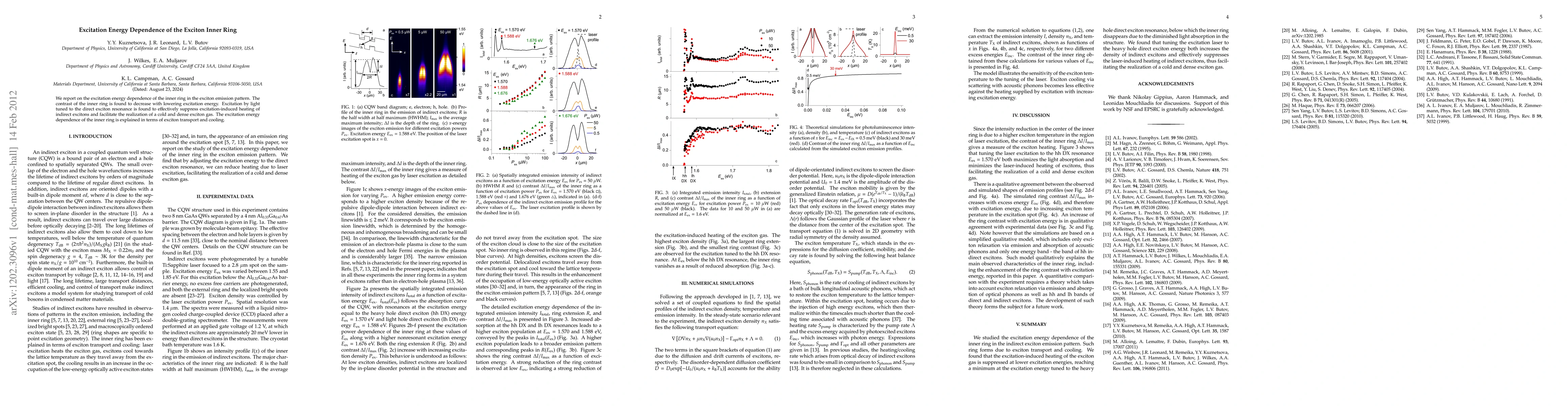 We report on the excitation energy dependence of the inner ring in the exciton emission pattern. The contrast of the inner ring is found to decrease with lowering excitation energy. Excitation by light tuned to the direct exciton resonance is found to effectively suppress excitation-induced heating of indirect excitons and facilitate the realization of a cold and dense exciton gas. The excitation energy dependence of the inner ring is explained in terms of exciton transport and cooling.