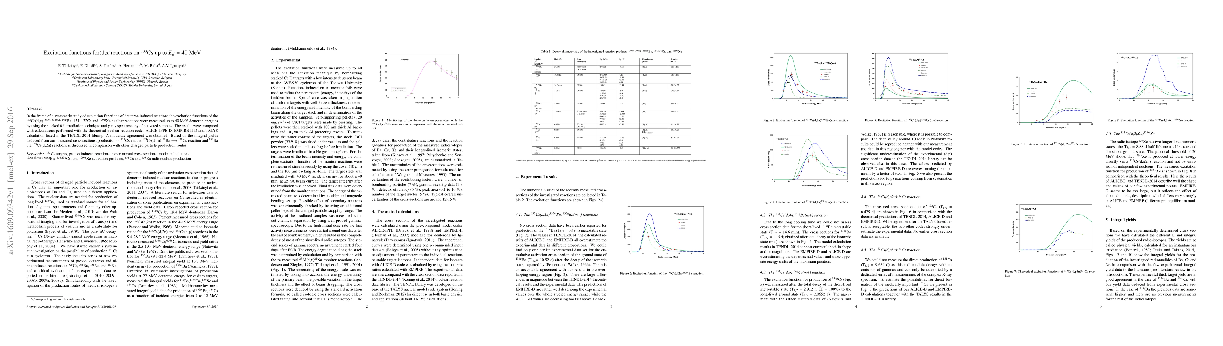 This paper measures the excitation functions for deuteron-induced reactions on $^{133}$Cs up to 40 MeV using stacked foil irradiation and gamma-ray spectroscopy, comparing results to theoretical calculations. It discusses the production of $^{131}$Cs and $^{133}$Ba, finding moderate agreement with theoretical models.
