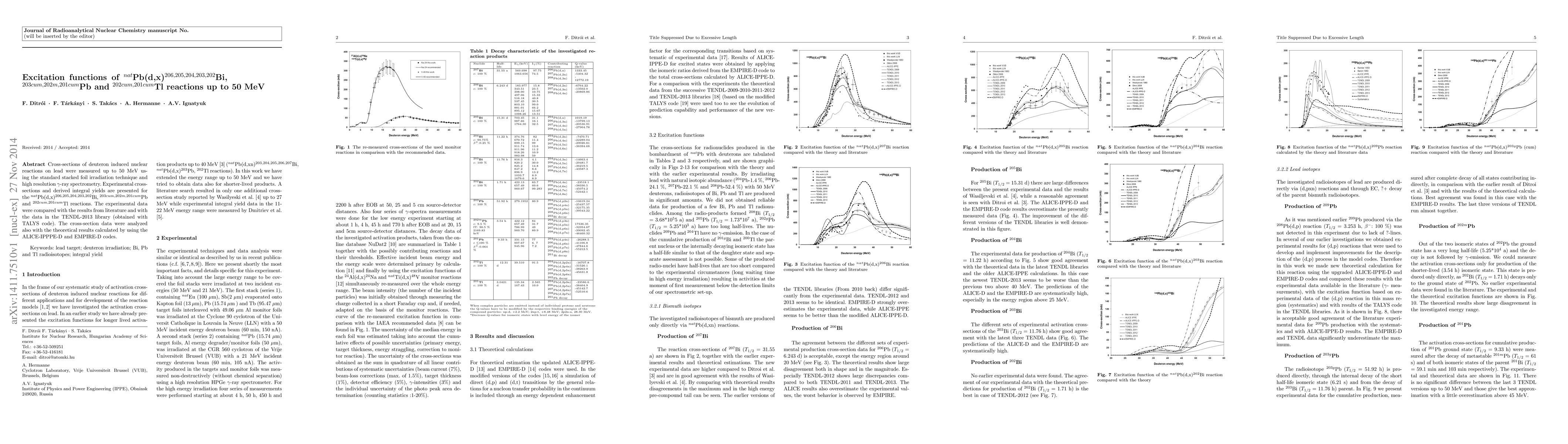 Cross-sections of deuteron induced nuclear reactions on lead were measured up to 50 MeV using the standard stacked foil irradiation technique and high resolution $\gamma$-ray spectrometry. Experimental cross-sections and derived integral yields are presented for the $^{nat}$Pb(d,x)$^{206,205,204,203,202}$Bi, $^{203cum,202m,201cum}$Pb and $^{202cum,201cum}$Tl reactions. The experimental data were compared with the results from literature and with the data in the TENDL-2013 library (obtained with TALYS code). The cross-section data were analyzed also with the theoretical results calculated by using the ALICE-IPPPE-D and EMPIRE-D codes.