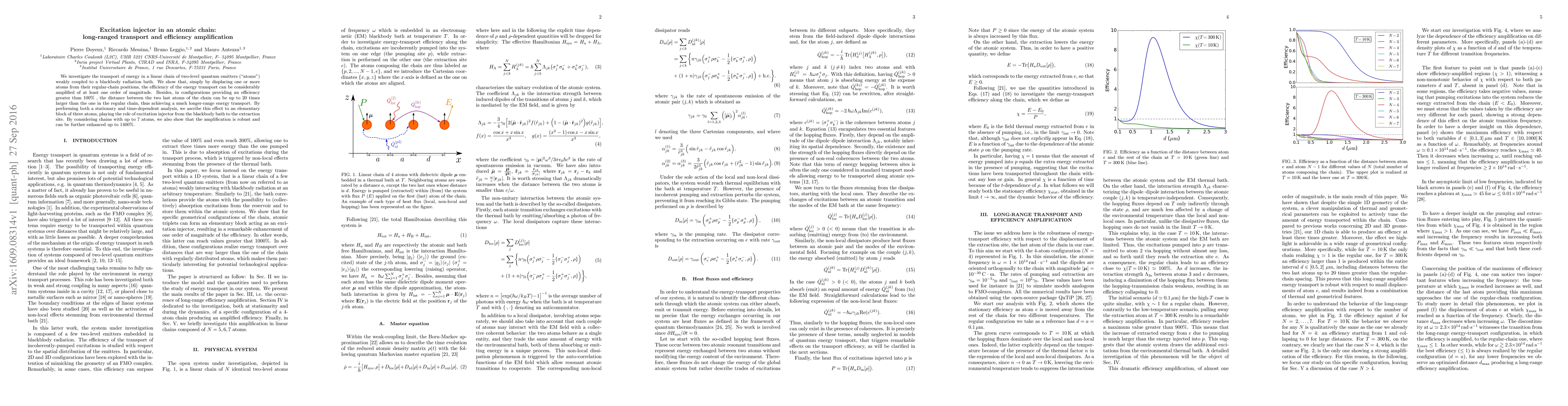 Research shows that displacing atoms in a chain can amplify energy transport efficiency by up to 1400% and extend range by up to 20 times, due to an 'excitation injector' effect.